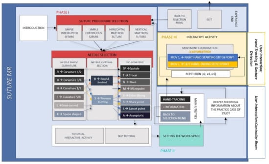 18]. In this first phase, the user selects, through interaction with the panels, the type of procedure to be practiced and the needle configuration, as shown in the red modules of