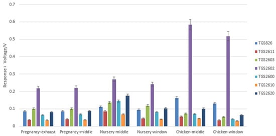 Figure 3 that the VOC contents in different times and spaces of livestock house are quite different. The VOCs of the nursery piggery house are more complex than that of the chicken house. From