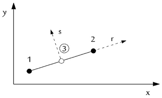Different types of finite elements were used in the creation of the numerical model, depending on their ability to describe the given issue. The 1D finite elements were used to model the longitudinal reinforcement of the beam as well as its shear reinforcement (stirrups). They represent isoparametric elements with one or two integration points for linear or quadratic interpolation for elements with two or three nodes. The geometry of the finite element is shown in Figure 13.