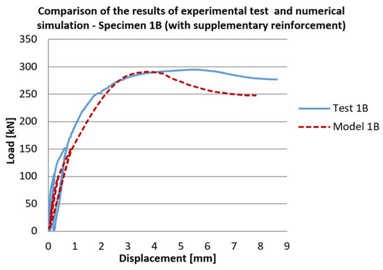 Comparison of results of the experimental test with numerical simulation—specimen with supplementary reinforcement.