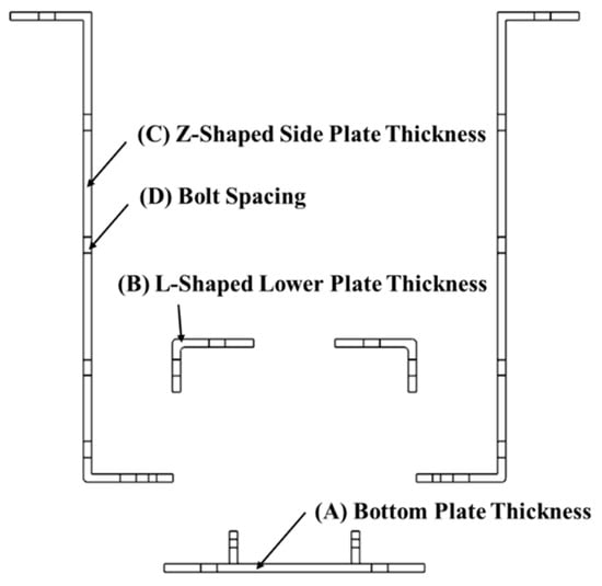 - In this study, the details and components of the modularized retrofitting method are proposed, with Z-shaped side plates, L-shaped lower plate, and bottom plate with vertical grid. Finite element analyses were carried out to investigate the effect of the bottom plate thickness, L-shaped lower plate thickness, Z-shaped side plate thickness, and the bolt spacing on the stress distribution. Details of the modularized steel plate retrofitting system were proposed based on the analysis results.