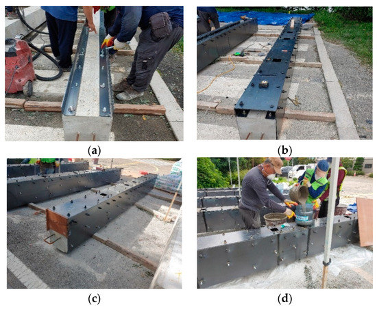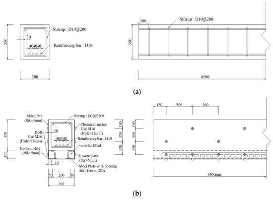 - The experiment in this paper focused on the evaluation of the flexural capacity of retrofitted concrete beams. Further experimental research is needed on the shear behavior of concrete beams retrofitted with modularized steel plates. Moreover, a finite element model that can predict structural capacity is required for the design stage.