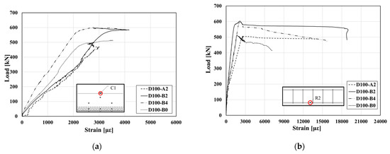 | The number of vertical grid | D100-B0 | ![]() | -Concrete crushing at the top of the concrete -As the number of steel plates with openings increases, the concrete crushing occurs more locally. |