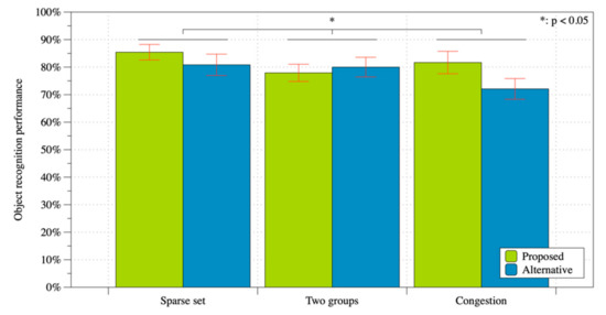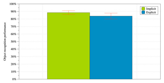 Figure 14 shows the recognition performance results. In order to verify the effect of each condition, we conducted a paired t-test and found no significant difference between the two applied strategy conditions (t(25) = −1.06, p = 0.302, d = 0.274). Accordingly, the result indicated that Prediction 2-1 was not supported.