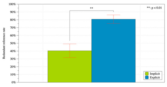 Comparison of rates of redundant references with standard error between explicit request and implicit entrainment.