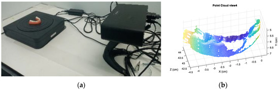 Now, we are ready to implement this algorithm on tooth reconstruction. We used the EinScan series, a commercial 3-D scanner, to collect a point-cloud data set in several consecutive views from two commercial tooth models. Examples of data acquisition setup and the point-cloud data are shown in Figure 7.