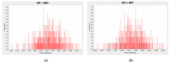 As seen in Table 3, the AVE square root of the latent variable BDT, shared with its indicator block (0.761), was superior to the variance it shares with the other latent variables: HS (0.622), IS (0.583), IUP (0.485), IUS (0.647), PC (0.431), PO (0.556), PR (0.599) and VS (0.695).