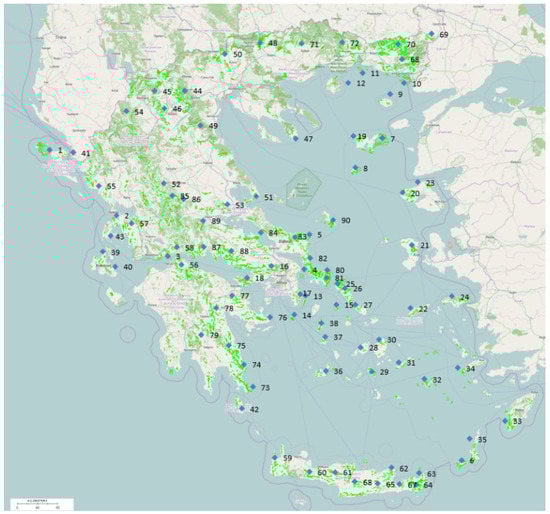 Figure 3 shows the overview of wind farms applications in the Greek territory and selection of 90 representative points in the whole Greek territory.