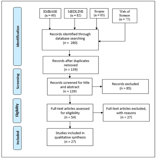The Preferred Items for Systematic Review and Meta-Analysis (PRISMA) guidelines [17] were followed for this review. A search was conducted in the databases: EMBASE, MEDLINE, Web of Science, and Scopus. Search queries were constructed by combining relevant subject headings and keywords with Boolean operators.