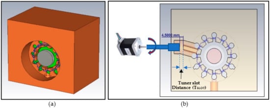 The twelve-hole-slot-type magnetron modeling. (a) 3D visual model; (b) tuning system of magnetron.
