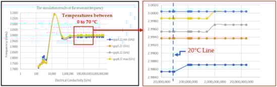The simulation results of the resonant frequency with the adjustment of the electrical conductivity.