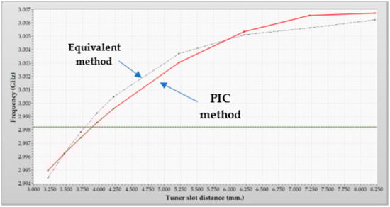 The simulation results of resonant frequency after adjusting tuner slot distance.