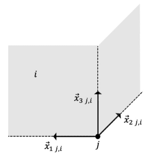 Based on these vectors, the angle , for which the element encloses around the node , is calculated according to [] by