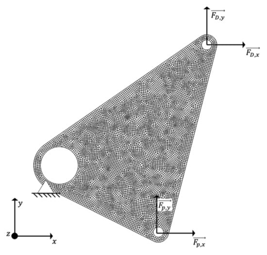 Force components for the chosen topology optimization (TO) problem. The values are based on the measurements of a formula student racecar [].
