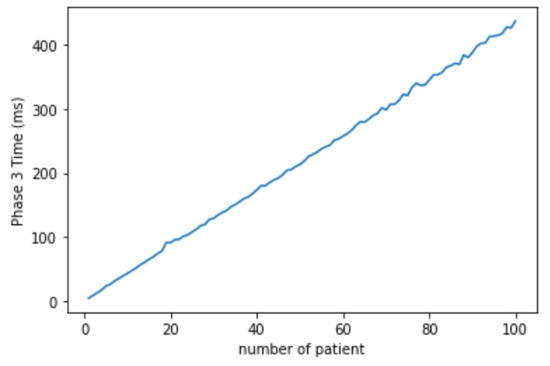 - W can then decrypt to obtain and fetches the patient’s EHR file from the above by applying ⊕ with . At this time, this situation is solved with ’s help if needed. This phase’s scenario shows in the Figure 3.