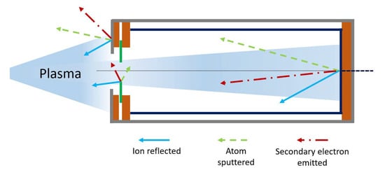 - Taccogna, F.; Longo, S.; Capitelli, M. Plasma-surface interaction model with secondary electron emission effects. Phys. Plasma 2004, 11, 1220–1228. [Google Scholar] [CrossRef]