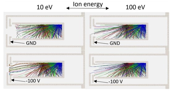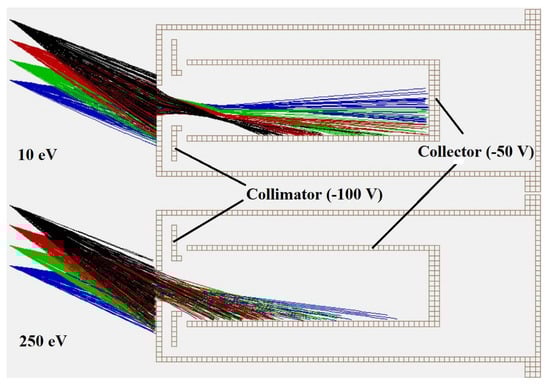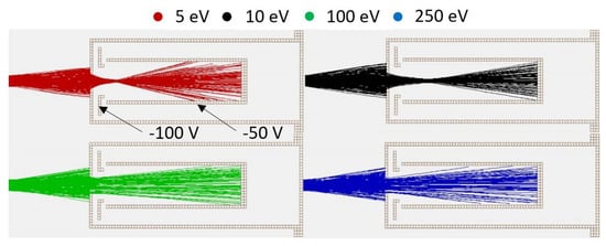 - Dahl, D.A. SIMION for the personal computer in reflection. Int. J. Mass Spectrom. 2000, 200, 3–25. [Google Scholar] [CrossRef]