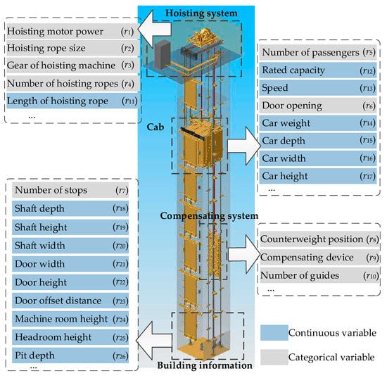 For the personalized CN, many elevator manufacturing enterprises have developed the requirements management system online. Otis Elevator Company in Yonkers, NY, USA, has developed Architect’s Assistant™ (http://aa.otis.com/aa/cda/cdalogin.aspx) (Accessed on 2 March 2021) and CabCreat™ (http://cabcreate.otis.com/) (Accessed on 2 March 2021) for requirements elicitation online. Hitachi Company in Tokyo, Japan, developed the smartDecorator software for customized elevator decoration. However, FR transformed from the obtained CN is mostly incomplete in these systems. For example, FR in the hoisting system of elevator (i.e., r1–r4 and r11 in Figure 2) cannot be directly obtained or transformed from CN in Architect’s Assistant™, because these requirements are too professional for customers to put forward. In addition, incorrect FR could impact the final design schemes. For example, with the larger predicted value of hoisting motor power (r1) compared with the ground truth in FR, the following negative situations may happen: (1) the increase in the price of elevator may lower customers’ satisfaction; (2) there exists more energy cost and it is not conducive to clean production; (3) long-time operation in low power may shorten the service life and increase maintenance costs.