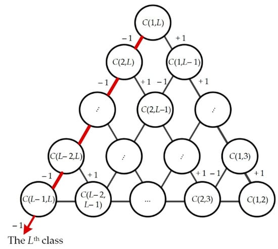 DAG for classifying L classes is shown in Figure 4 [37], where C(m,n) represents the binary classifier classifies the mth and nth classes. C(m,n) equaling +1 or −1 represent this sample belongs to nth or mth class. For example, if the outputs of all (L−1) classifiers are −1, this sample is predicted as the Lth class.