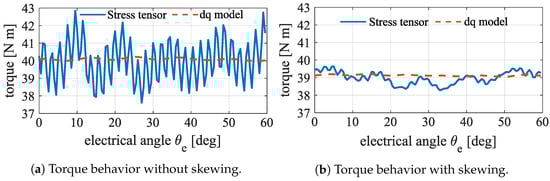 In [12,13], an alternative procedure is proposed, combining the analytical voltage equation of the considered machine with FEAs, used to upload, in each time instant, the inductive lumped parameters to the analytical model, considering the skewing.