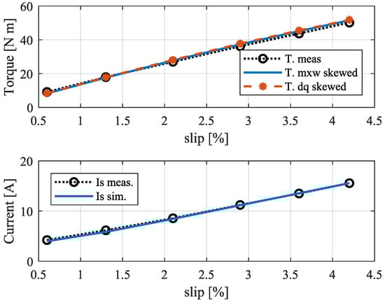 where are the on-load iron losses and are the no-load iron losses. The additional cage losses can be estimated analytically, using the harmonic equivalent circuits. From measurements, the additional losses are computed according to the Standard. Comparison with the simulations results is reported in Figure 19.