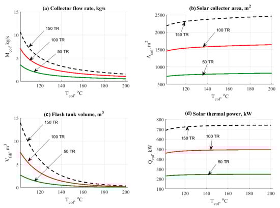 Today, the substitution of traditional energy sources by renewable ones has becomes urgently needed for the clean and sustainable development of the energy sector worldwide. Climate change, the world’s noticeable growth in population number, and the improvement in standard conditions of living make cooling demands to increase significantly. According to the International Institute of Refrigeration reports, approximately 15% of total electricity production in the world is used for refrigeration and air conditioning [1]. About 80% of the global electricity is produced from fossil fuels, which increases the emissions of greenhouse gases significantly [2]. Solar thermally activated cooling systems are more attractive than the other type because of the near concurrence of peak cooling loads with the available solar power. Taking into account the deficiency in electrical power in most developing countries, all these previous factors make solar cooling technology a suitable and clean alternative for a big problem. Current studies of solar thermal cooling technology should strive to realize modern, low-cost, energy-efficient, high-temperature collectors, and to develop a high-performance, low-temperature enabled air conditioning technology [3]. In particular, there has to be a determination to find the optimal operational capabilities that make the optimum total performance of the device to be reached despite the apparent specific use of high-efficiency technology. Today, absorption chillers are the most mature technology. Therefore, solar thermal absorption cooling units might be a great option to reduce the usage of electricity in cooling and obtain economic gains [4,5,6].