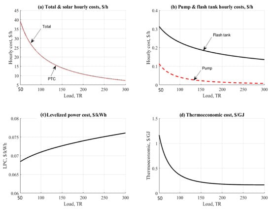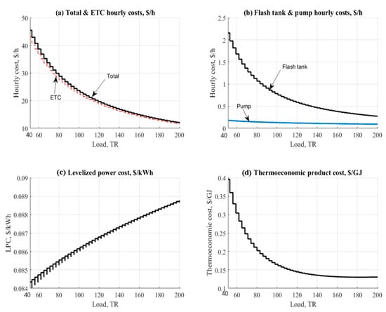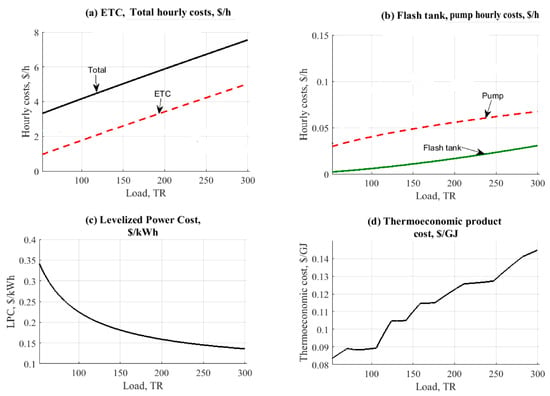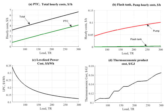 where, represent the average cost for each unit of exergy in (USD/kJ) for inlet (i), outlet (o), power (w), and energy (q) respectively. The following relationships are used to estimate the costs per hour:
