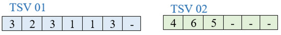 Now, assume a topology of 10 SDRs with IDs 1, 2, 3, 4, 5, 6, 7, 8, 9, and 10. In the first TDMA cycle, each SDR sends the NBR_DSCV packet in its time slot with the information they have in their NBR_table as depicted in Figure 6. Suppose that sends NBR_DSCV packet with no information in its NBR_table and that it made its entry in the NBR_table of SDRs , and as shown in Table 3 (the colors of each transmission show entries, added by matching colored arrows in Figure 6). Then, sends the packet to its neighbors , and . Similarly, transmits the discovery packet to not only announce itself to its 1-hop neighbors but also shares hop information of to and to , as they are not the neighbors of each other but of . The NBR_DSCV packet of is shown in Figure 7, where the two-bit code is the hop information of each node which is at 1- or 3-hop away from i.e., and are represented at 1-hop with bit code 01. All other remaining SDRs similarly send NBR_DSCV packets. After one-time neighbor discovery, each SDR knows about its 1- to 4-hop neighbors.