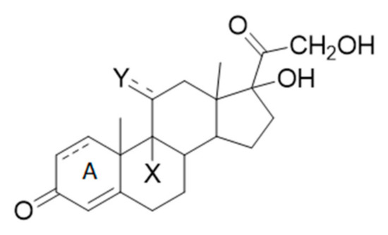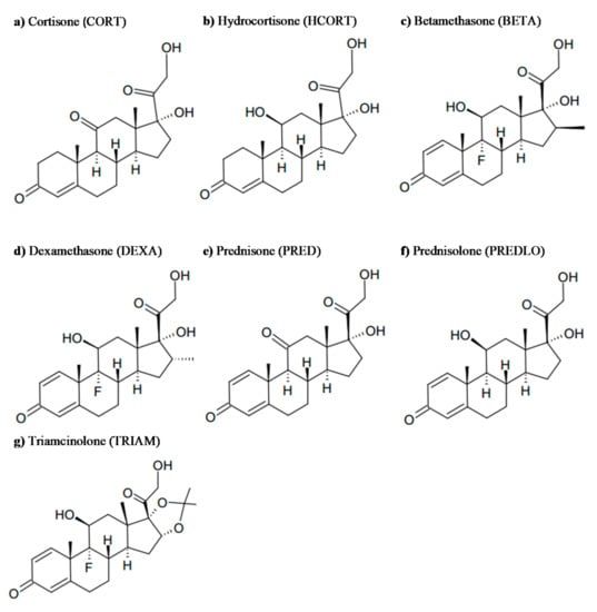 The role of glucocorticoids in biochemistry is difficult to exaggerate. The many possible configurations and the various chemical functions present explain the variety of reactions they catalyze in the cell and the sophisticated machinery that, starting from the regulation of glucocorticoid secretion by the hypothalamic-pituitary-adrenal (HPA), governs virtually all of the physiological processes, such as metabolism, immune and cardiovascular functions, skeletal growth, reproduction, and cognition [1,2]. Specifically, glucocorticoids (GCs) can inhibit immunological, inflammatory, and allergic processes in our body in response to an outer stimulus. Since their coming in the 1950s, many synthetic molecules have been synthesized to increase pharmacological activity and reduce side effects [3].