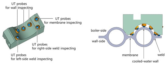 Schematic of the flexible ultrasonic probe (FUP) for measuring the water-cooled wall thicknesses.