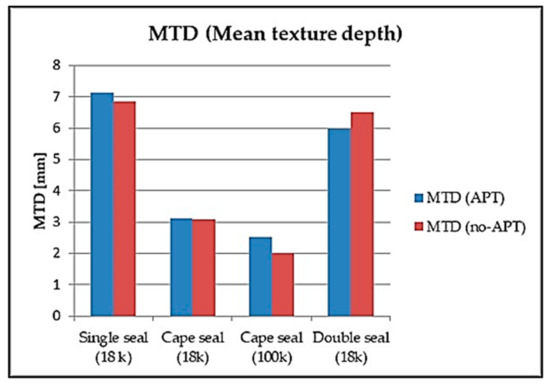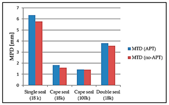 Comparative Mean Texture Depth (MTD) between the various chip seal surfacings both with and without APT loading.