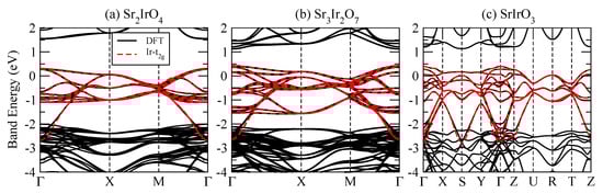- Zhang, H.; Haule, K.; Vanderbilt, D. Effective J = 1/2 Insulating State in Ruddlesden-Popper Iridates: An LDA+DMFT Study. Phys. Rev. Lett. 2013, 111, 246402. [Google Scholar] [CrossRef]