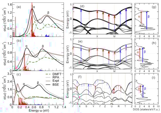 - Rigamonti, S.; Botti, S.; Veniard, V.; Draxl, C.; Reining, L.; Sottile, F. Estimating Excitonic Effects in the Absorption Spectra of Solids: Problems and Insight from a Guided Iteration Scheme. Phys. Rev. Lett. 2015, 114, 146402. [Google Scholar] [CrossRef]