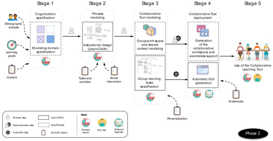- Stage 5—Use of the collaborative learning tool: the last stage involves the end users. This figure will usually be linked to students. Similar to the first phase, the end users must install the generated collaborative tool on their Eclipse platforms and solve the determined learning task.