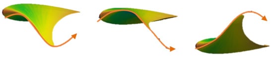 The equations representing the deformation of the fin can be obtained from the work of Russo et al. [20], who analysed the skeletal structure of a cownose ray and related it to the kinematics of the fin. Assuming that the deformation is continuous along the fin, the equations representing the deformation of a section of the fin are as follows: