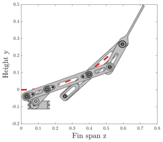 Considering that the sum of the length of the three links must be equal to the length of the span of the fin, it is possible to write the following: