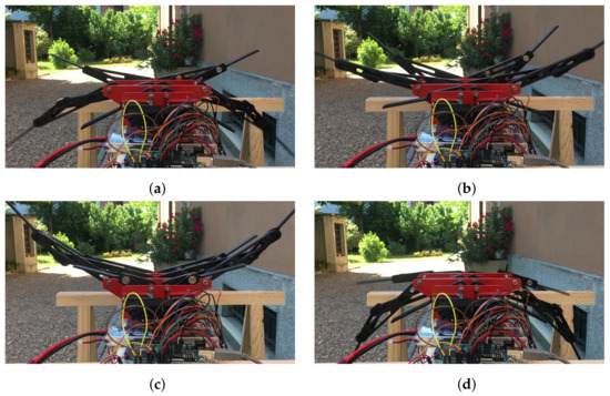 The control algorithm was tested experimentally, as displayed in the supplementary video and in Figure 21, where the fin mechanisms are shown in different instants of their motion.