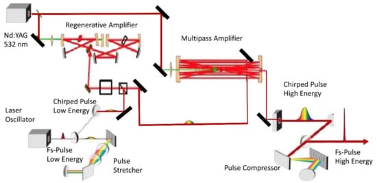 - Strickland, D.; Mourou, G. Compression of Amplified Chirped Optical Pulses. Opt. Commun. 1985, 56, 219–221. [Google Scholar] [CrossRef]