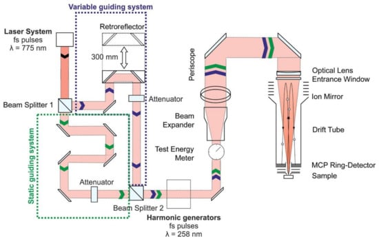 In recent LIMS experiments, the laser ablation optical system is further modified to accommodate a second laser pulse. To support their flexible delay, interferometric setups (e.g., Mach-Zehnder) and optical elements allowing laser pulse intensity tuning) are included [88]. Such systems, called double pulse (DP) systems, are found to be very useful for increasing ionisation efficiency and control over the abundance of polyatomic/molecular species produced during the ablation [88]. In a very recent investigation, this system was extended to UV femtosecond radiation range [82]. Both pulses were then introduced into an SHG/THG [82]. UV femtosecond radiation with up to 15–20 μJ per pulse can be produced from an initial fundamental pulse energy of 1mJ and tuned with specially designed polarisation optics.