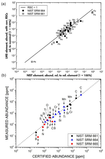 Assessment of the capabilities and calibration of the LIMS instruments is commonly performed using standard research materials (SRM). NIST standards including high carbon steel, electrolytic iron steel, geological soils, and samples with certified isotope abundances are used. The following subsections cover different aspects of fs-LIMS performance evaluation.
