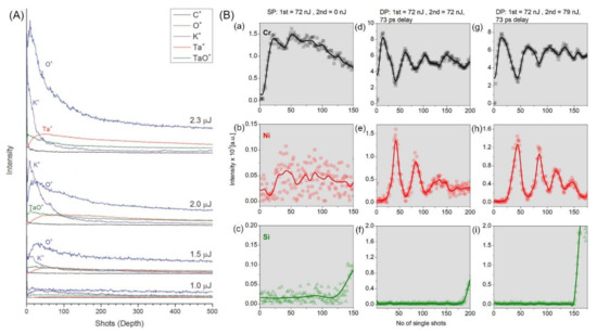 Further improvement of mass resolution and isotope accuracy was achieved using a post-processing filtering algorithm that uses systematic exclusion of individual distorted mass spectra from the data set to improve spectra quality [112]. Implementation of double pulse laser ablation ion source increased ion yield and also proved to be a powerful method in the suppression of isobaric interferences, improvement of depth profiling accuracy and quantitative performance to chemical composition [82,88].