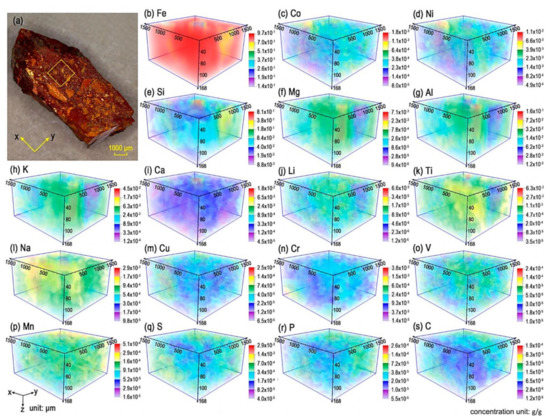 - He, M.; Meng, Y.; Yan, S.; Hang, W.; Zhou, W.; Huang, B. Three-Dimensional Elemental Imaging of Nantan Meteorite via Femtosecond Laser Ionization Time-of-Flight Mass Spectrometry. Anal. Chem. 2017, 89, 565–570. [Google Scholar] [CrossRef] [PubMed]