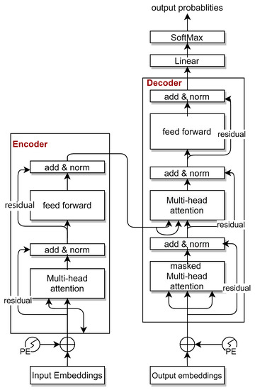 - Vaswani, A.; Shazeer, N.; Parmar, N.; Uszkoreit, J.; Jones, L.; Gomez, A.N.; Kaiser, L.; Polosukhin, I. Attention Is All You Need; Curran Associates Inc.: Red Hook, NY, USA, 2017; pp. 5998–6008. [Google Scholar]