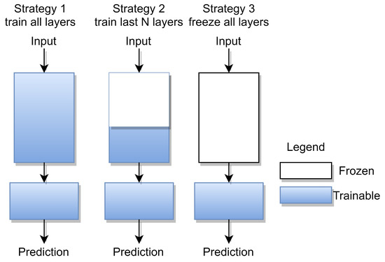In this section, we discuss how to utilize BERT pretrained models to approach NLP tasks. There are three common strategies, as shown in Figure 4. The first strategy is to tune all layers, that is, to train the entire pretrained model with a new task while the pretrained model parameters are used as initializations. Second, we fine-tuned only some layers while keeping the weights of the rest of the network unchanged. Another strategy is to freeze the entire architecture while attaching a set of layers to the output of the pretrained model. During training, only the parameters of the new layers are allowed to change.