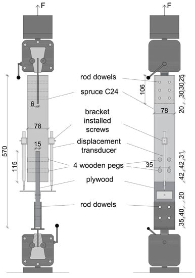 - Youn, G.J.; Kon, J.H. Evaluate Test Methods on Bearing Property of Wood Peg Connection. In Proceedings of the World Conference on Tmber Engineering, Vienna, Austria, 22–25 August 2016; pp. 5479–5487. [Google Scholar]