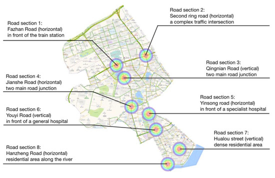Eight selected road sections’ location and features.