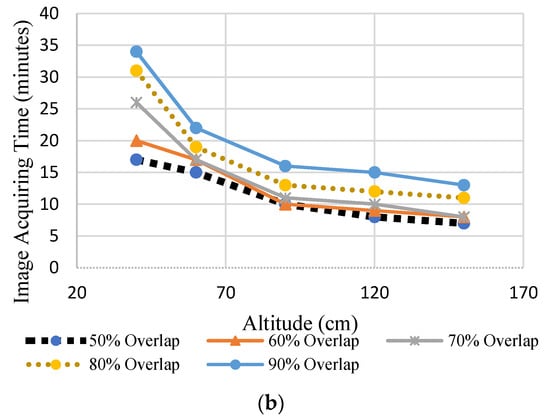 (a) Influence of image overlap on image acquisition time; (b) influence of altitude on image acquisition time.