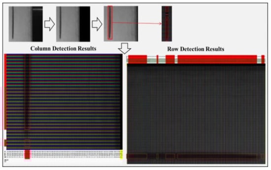 (5) If the [CMax–CMin] is not within (1 ± μ) GlobalAvg and CAvg are much smaller (over 10 times) than the value of GlobalAvg. This means the average gray projection value of the column is too low and the column is background.