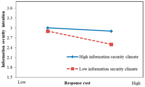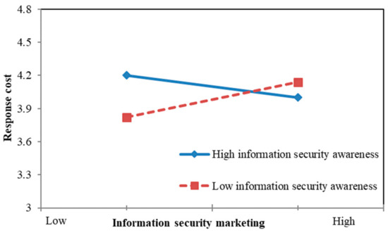 Second, this study primarily focused on the overall yet rarely studied response cost to consider when an organization needs to proceed with security marketing. ISM harmed RSC. Although ISM is critical to an organization and improves employees’ efficient security intentions, RSC is often restrained [53,55]. In this context, the cost is not likely to be in terms of cash but instead lost time, working inconvenience, and learning price. It is not easy to achieve high efficiency when complying with security procedures for sufficient work in a busy environment.
