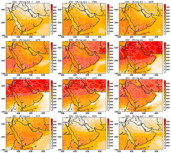 The monthly performance of DNI (W/m2) over 37 years (1980–2017) in the GCC region. Copyright © 2021 Elsevier [].